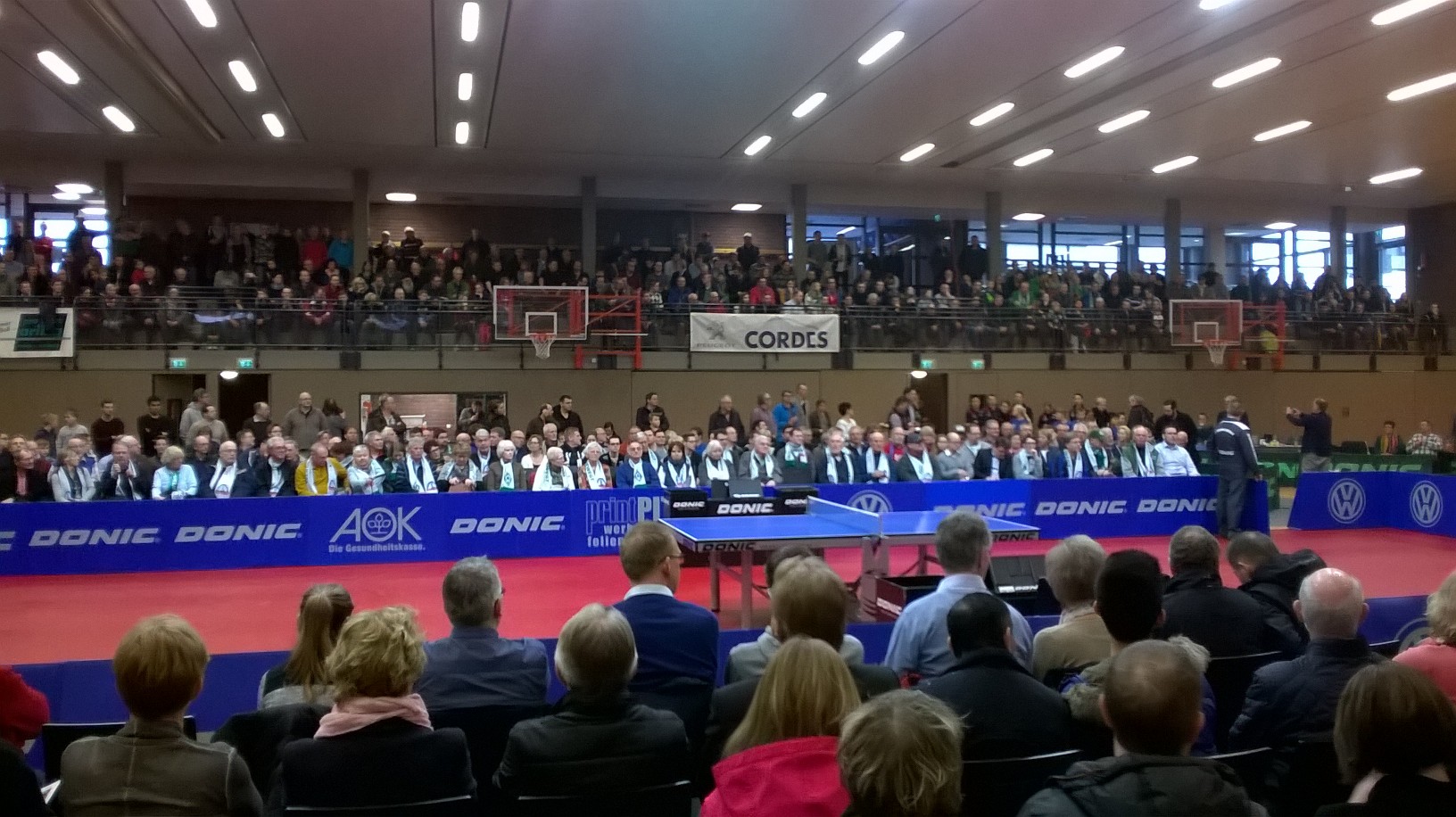 Die nahezu frenetische Unterstützung der Papenburger Zuschauer für das Team des SV Werder reichte nicht aus. Trotz des Fehlens des Spitzenspielers Bastian Steger konnte die "Heimmannschaft" das Spiel bis zum finalen Ballwechsel offen gestalten und zumindest an der Sensation schnuppern. Im letzten Spiel erwies sich Abwehrartist und National-spieler Ruben Filus allerdings als nervenstarkes Bollwerk gegen das junge Bremer Nachwuchstalent Humor Szöcs. Das Papenburger Publikum honorierte die langen und spektakulären Ballwechsel mit viel Applaus. Auch der Abteilungsleiter Kurt Hanneken zeigte sich auf Grund des großen Zuschauerzuspruches und des spannenden 3,5-stündigen Spiels begeistert.